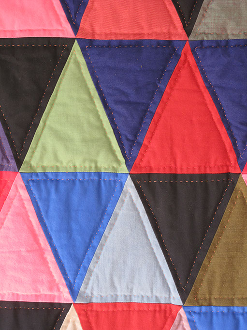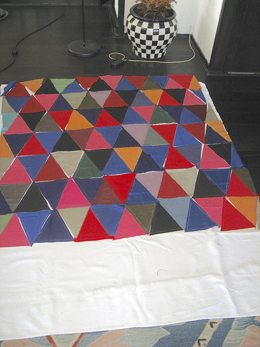 In januari 2013 is Hanneke begonnen met een deken voor Broes en Hagar. Inspiratie is een Amish crib quilt uit Kalona (Iowa) uit ca. 1930 met een patroon van driehoeken van effen lapjes. Oorspronkelijke maat 41 x 33 in.
