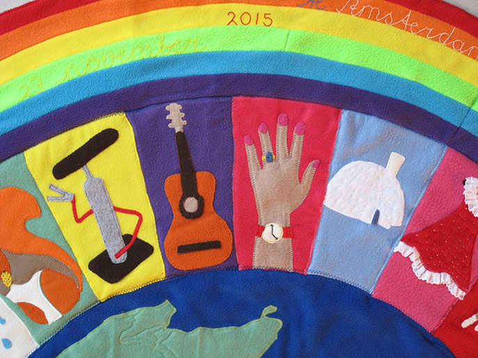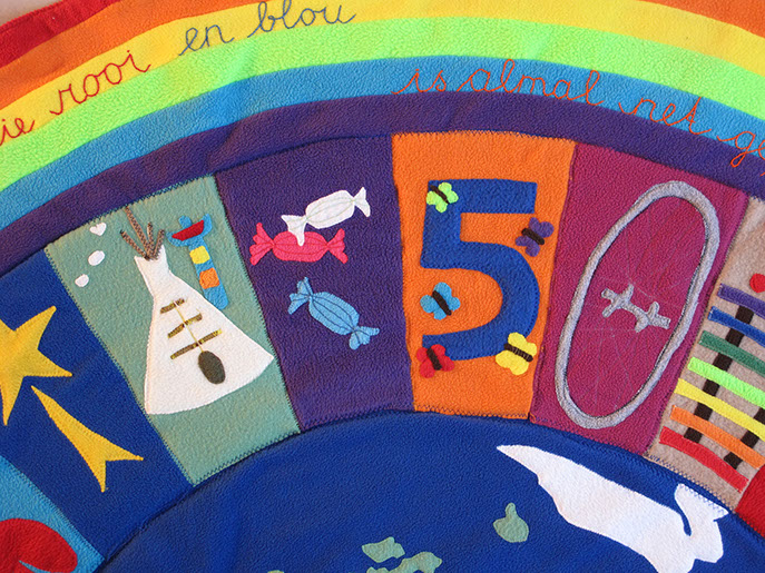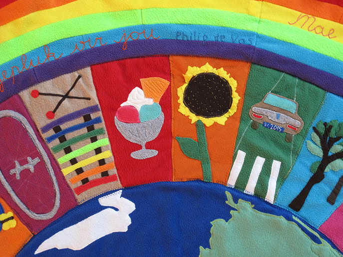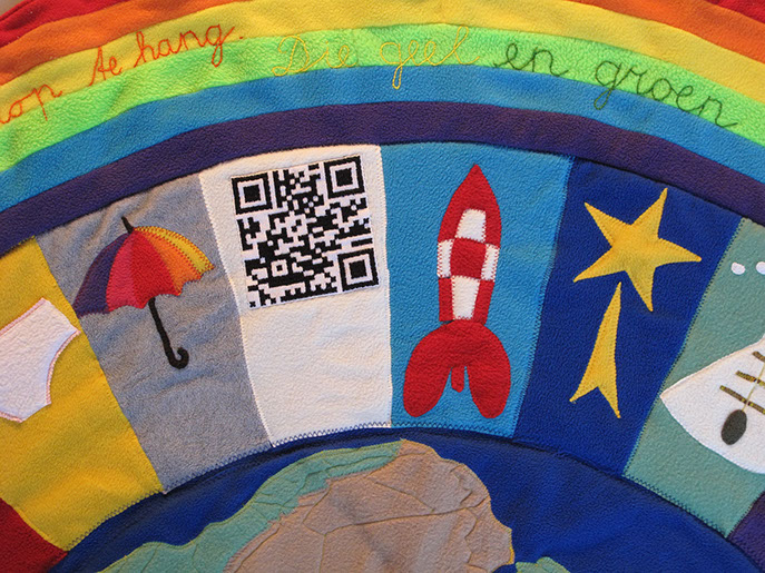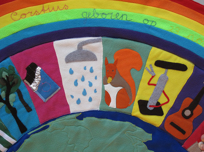 Voor de geboorte van het kindje van Jelle en Marscha heeft Hanneke een deken gemaakt samen met Aafje, Adinda, Akelei, Broes, Fenna, Hagar en Jos.