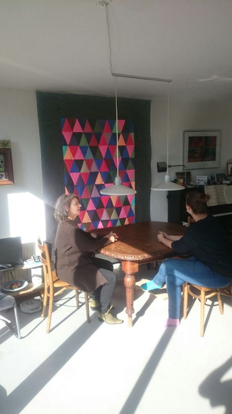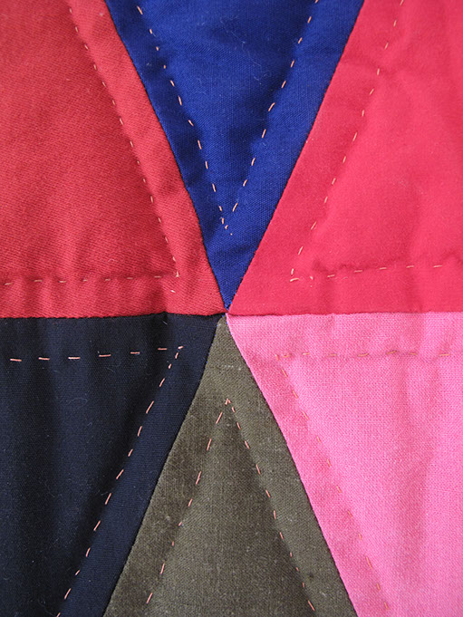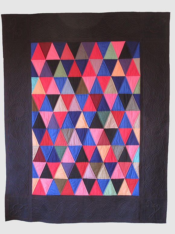 In januari 2013 is Hanneke begonnen met een deken voor Broes en Hagar. Inspiratie is een Amish crib quilt uit Kalona (Iowa) uit ca. 1930 met een patroon van driehoeken van effen lapjes. Oorspronkelijke maat 41 x 33 in.