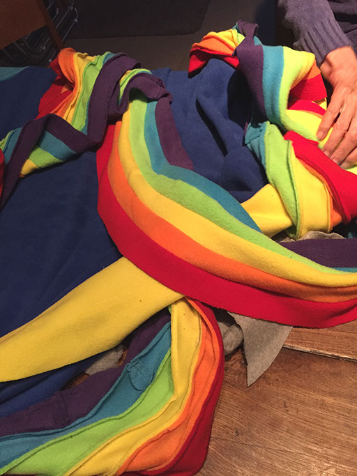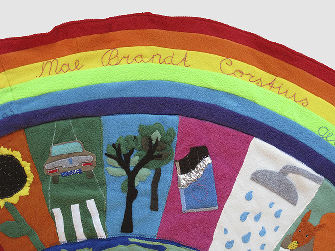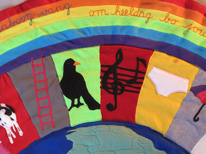 Voor de geboorte van het kindje van Jelle en Marscha heeft Hanneke een deken gemaakt samen met Aafje, Adinda, Akelei, Broes, Fenna, Hagar en Jos.